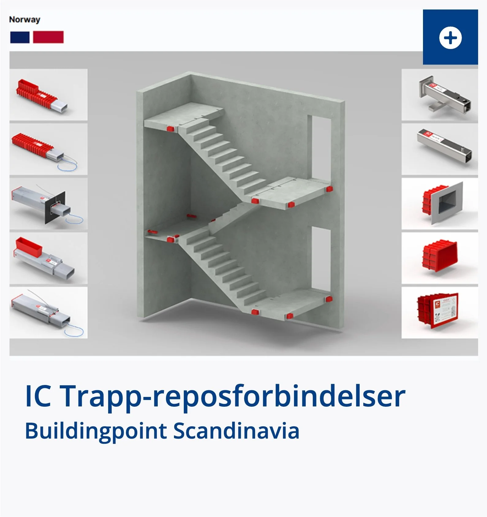 Easier stair-landing detailing: The ‘IC Trapp Reposforbindelser’ (stair-landing connectors) from Invisible Connections is now available as a native Tekla component package.